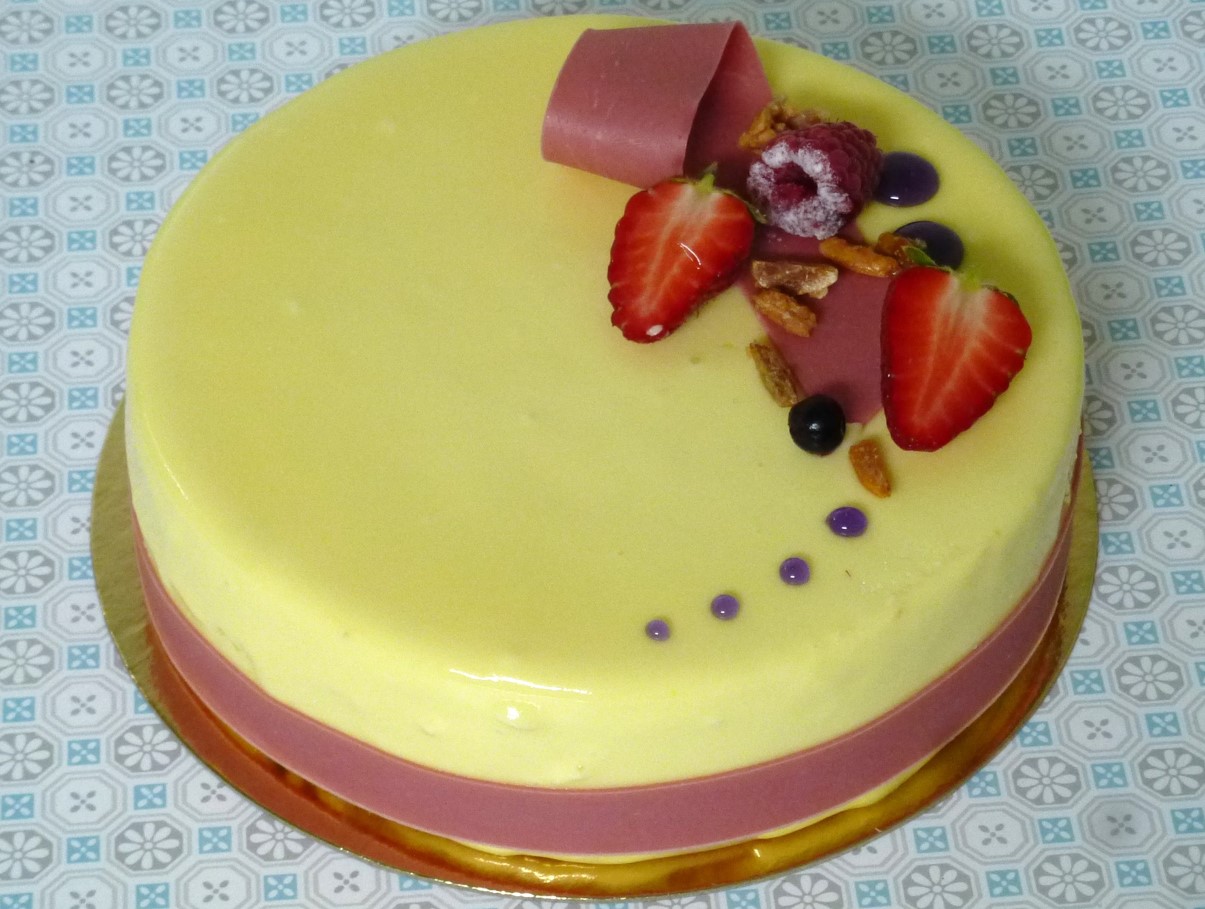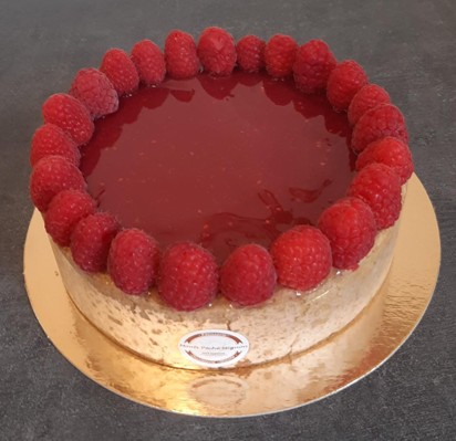 Pour le décor: hors saisons les framboises sont remplacées par de la crème vanille